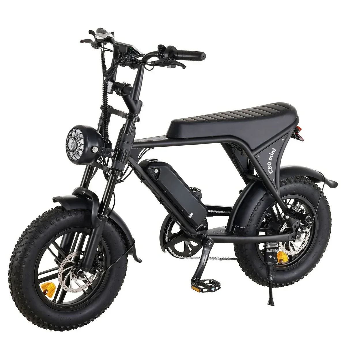 De C80 Mini Fatbike is een compacte elektrische fatbike, speciaal ontworpen voor gebruikers die op zoek zijn naar een wendbare en lichte fiets zonder in te leveren op prestaties. Dankzij de krachtige 250W-motor met trapondersteuning tot 25 km/uur voldoet de C80 Mini volledig aan de Nederlandse regelgeving voor elektrische fietsen. Ideaal voor zowel stadsritten als avontuurlijke tochten.